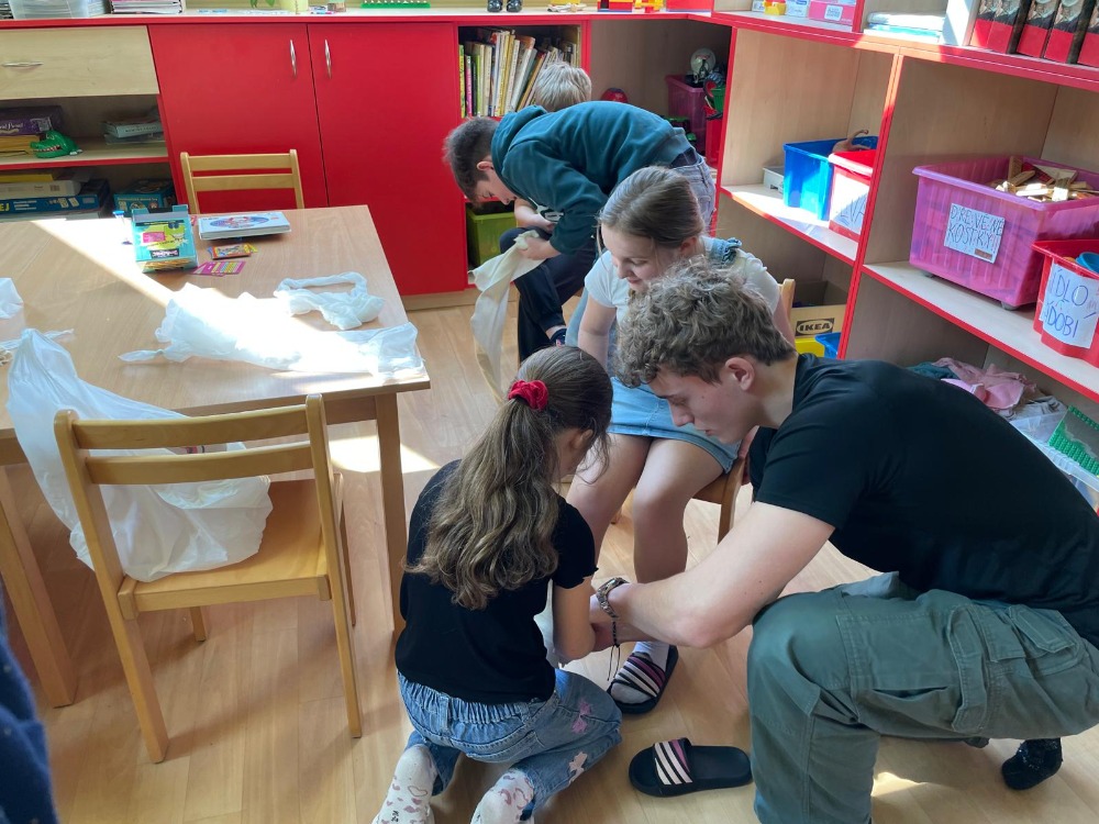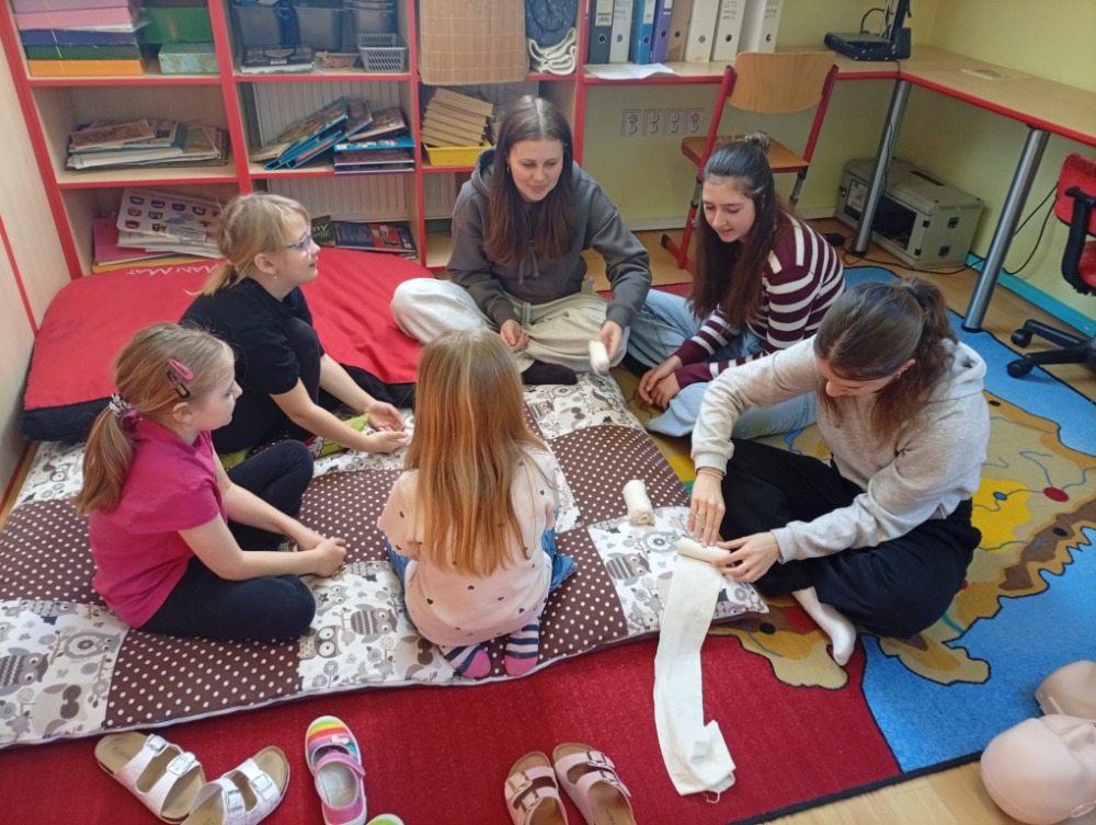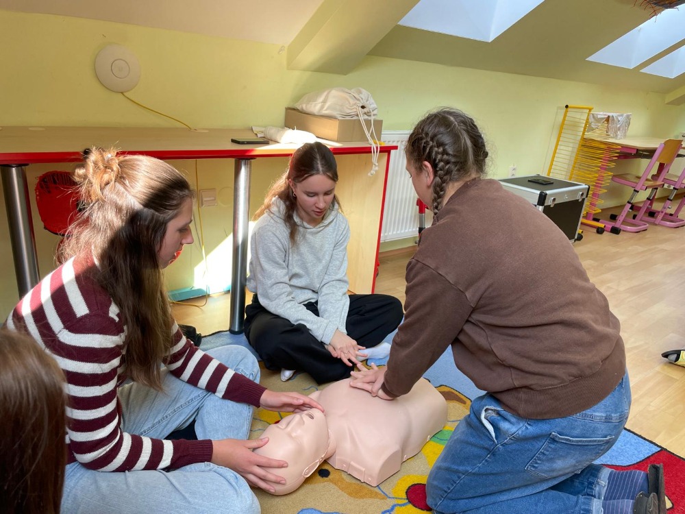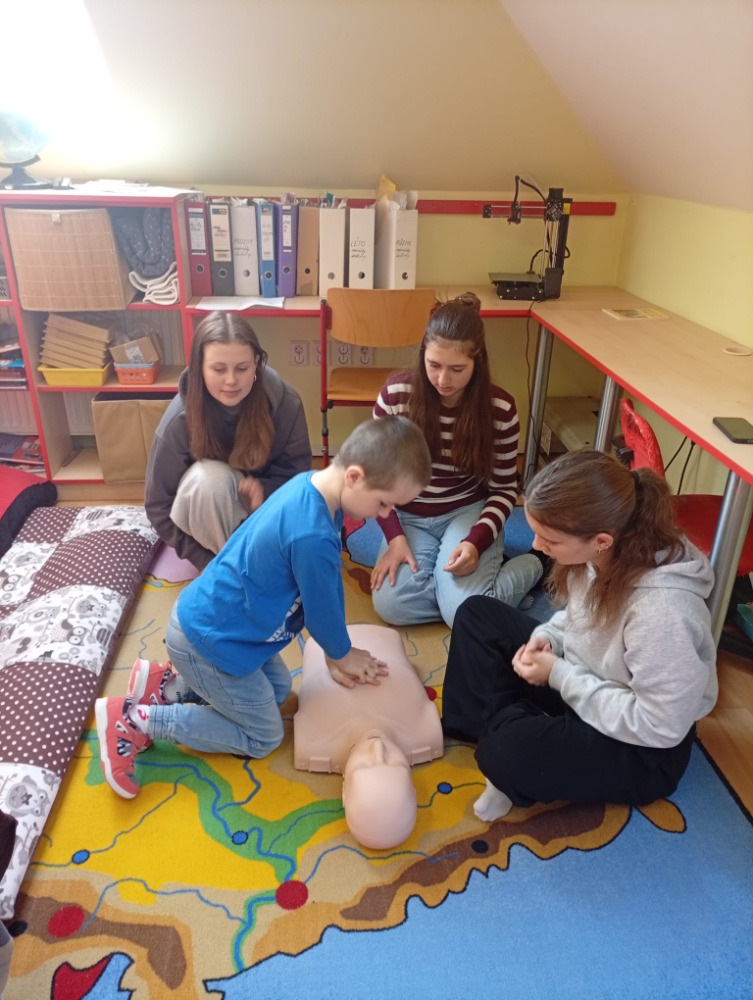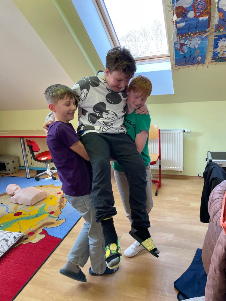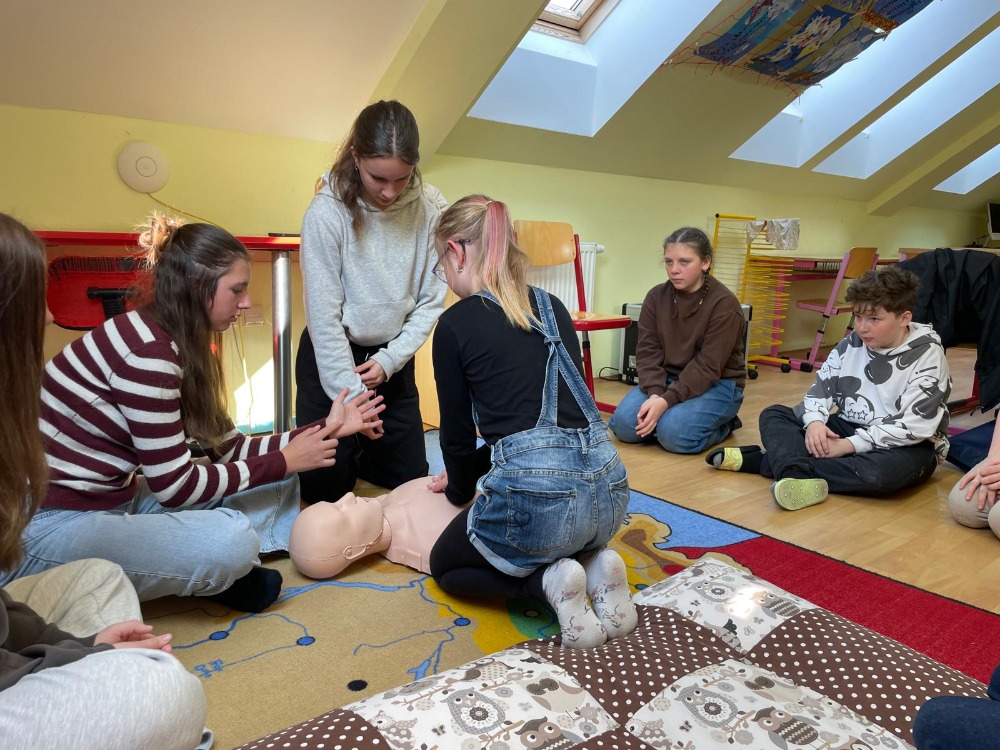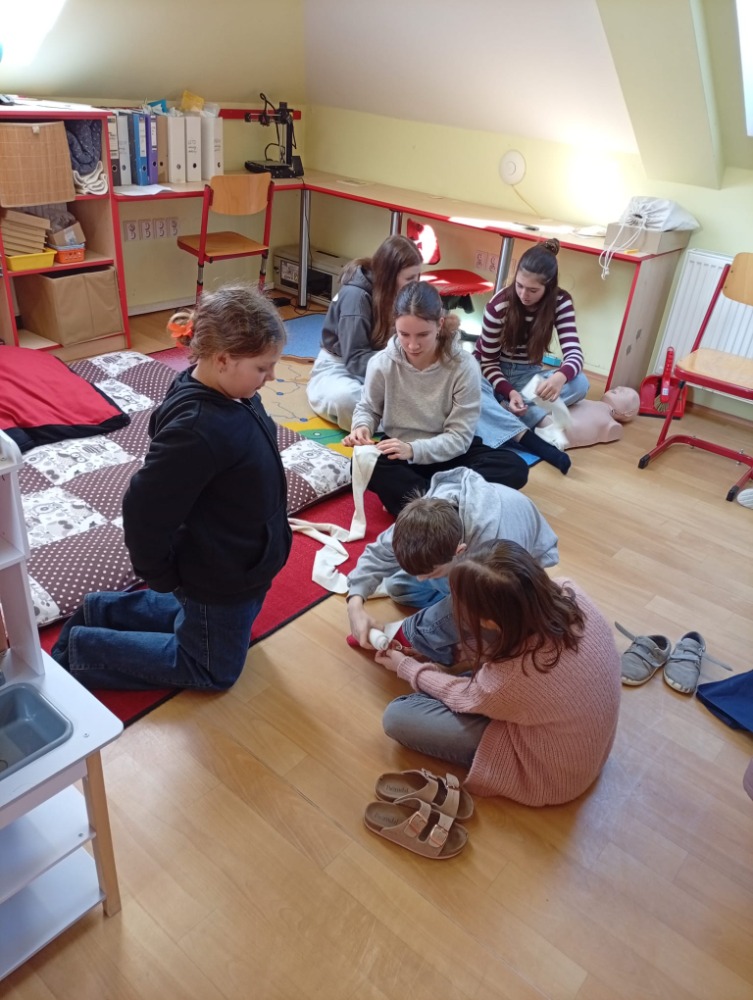 Dnes nás navštívili žáci hronovské základní školy, kteří navštěvují zdravotnický kroužek pod vedením paní Aleny Urbanové. Dozvěděli jsme se, jak správně postupovat při poskytování první pomoci – a nezůstalo to jen u teorie. Sami jsme si vyzkoušeli masáž srdce, ošetření zlomené ruky, práci s obvazy a i to, jak správně postupovat u nehybného člověka v bezvědomí. Povídali jsme si také o důležitých situacích ze života – co dělat, když se něco stane spolužákovi nebo někomu z rodiny, jak správně reagovat a jaká jsou telefonní čísla na záchranné složky. Ti nejmenší si navíc hravou formou vyzkoušeli, jak dobře znají jednotlivé části lidského těla.
