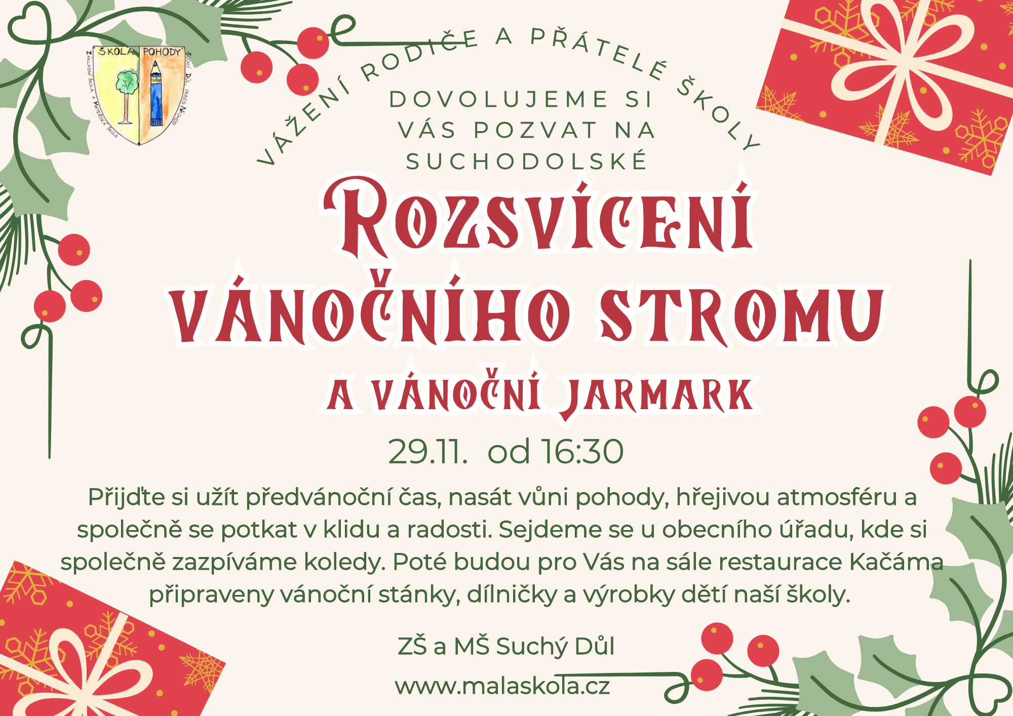 Srdečně Vás zveme na rozsvícení vánočního stromu a vánoční jarmark dne 29. 11. 2025 od 16:30.