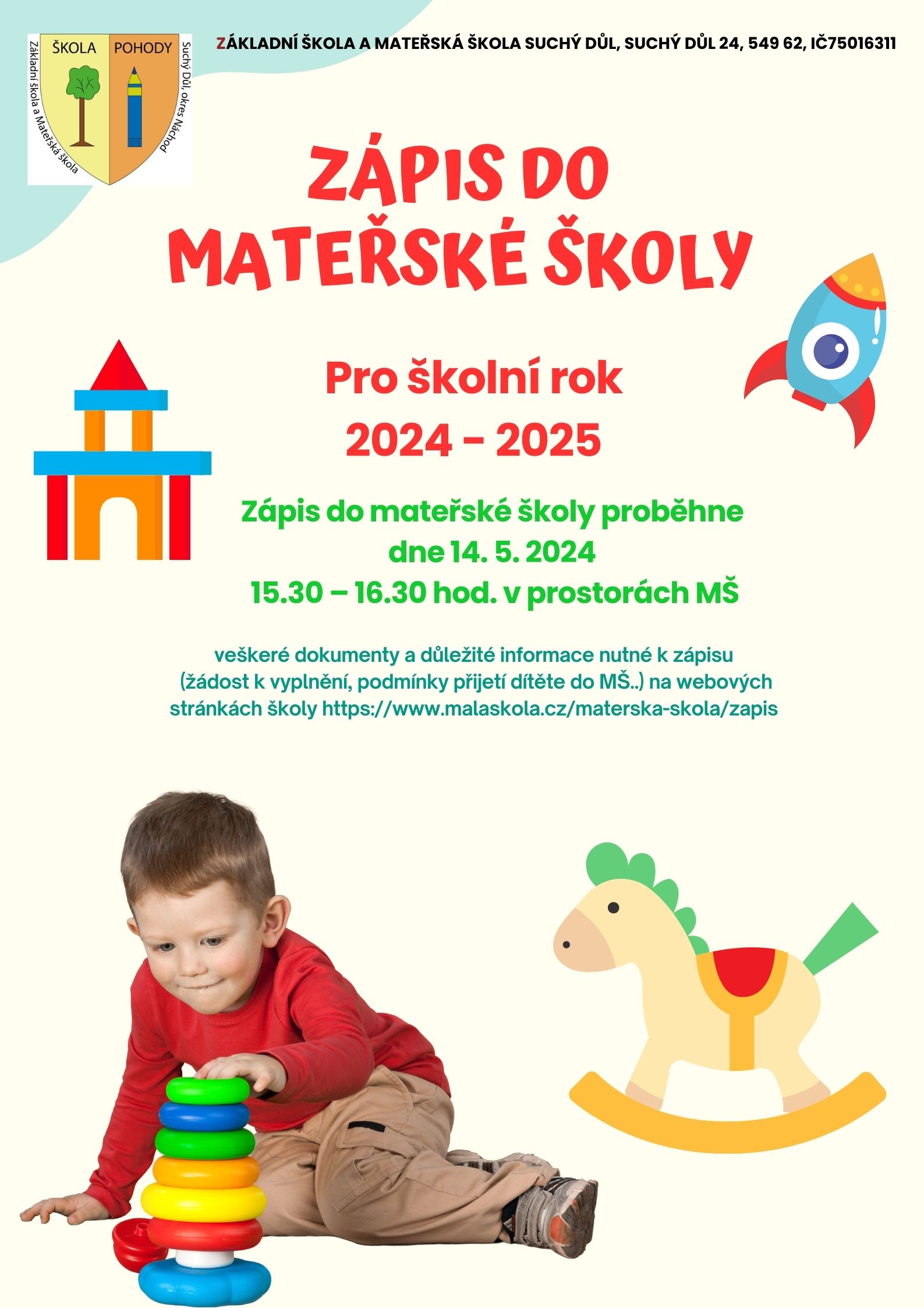 Základní škola a Mateřská škola Vás zvou k zápisu do 1. třídy pro školní rok 2026/2027, který se uskuteční 5. 2. 2026 od 15:30 do 17:30 v naší škole.