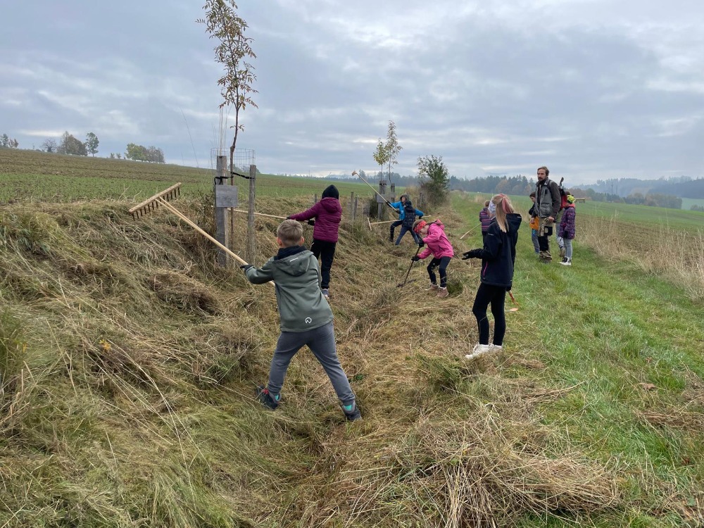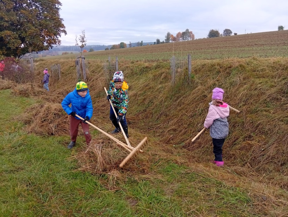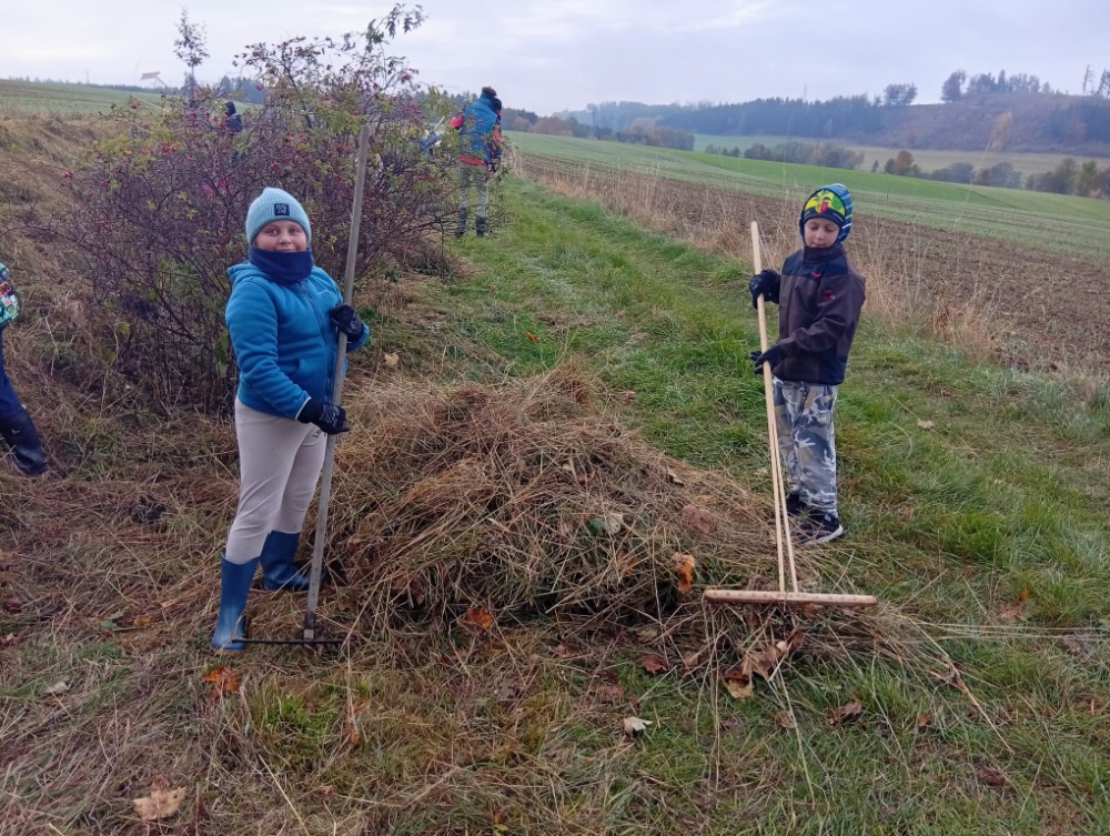 Dnes jsme se vydali upravit naši školní alej. Manželé Vávrovi pro nás připravili moc pěkný program – poznávali jsme listy a stromy, zazpívali si písničku a dozvěděli se spoustu zajímavostí o okolní přírodě. Ukázali nám různá místa a vysvětlili, jak fungují a proč jsou důležitá. Třeba místo zvané V Dolech, které pomáhá zadržovat vodu, aby v Suchém Dole nevznikaly záplavy. Na naší aleji jsme pak s chutí pracovali – hrabali jsme, okopávali a uklízeli. Zapojil se opravdu každý z nás. I když máme za sebou kus práce a sluníčko nám již tolik nepřálo, dopoledne jsme si moc užili.